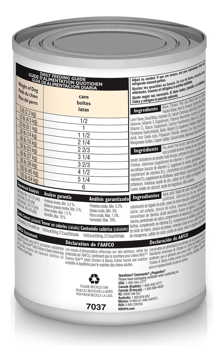 Hill’s Science Diet Adulto Pollo y Cebada es la opción ideal para perros de razas medianas y grandes en su etapa adulta. Esta comida húmeda, presentada en una práctica lata de 370 g, combina ingredientes de alta calidad como pollo, hígado de cerdo y cebada perlada quebrada, proporcionando una nutrición equilibrada y sabrosa que tu mascota disfrutará.