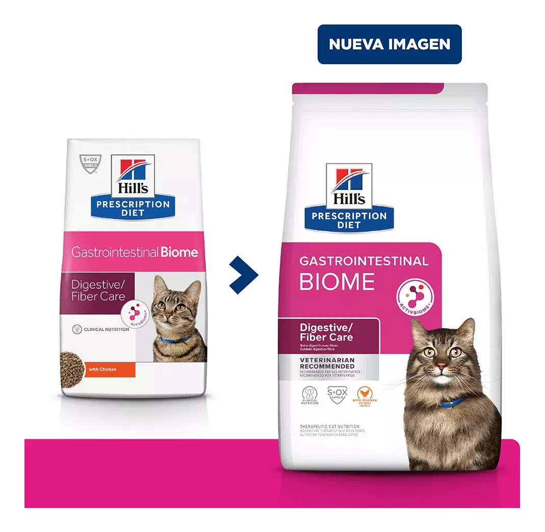 Elige Hill’s Gastrointestinal Biome para cuidar la salud digestiva de tu gato y ofrecerle una alimentación que combina sabor y bienestar. Con este alimento, tu mascota disfrutará de cada bocado mientras se beneficia de una nutrición diseñada para sus necesidades especiales.