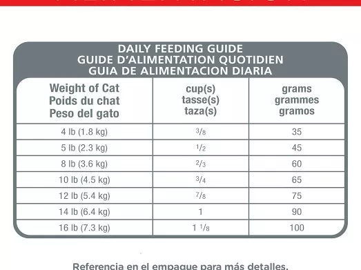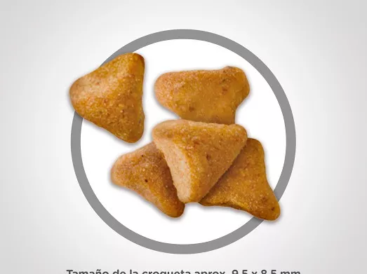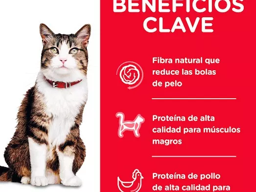 Carne de pollo, Harina de gluten de maíz, Arroz de cervecería, Gluten de trigo, Celulosa en polvo, Trigo integral, Sabor a hígado de pollo, Pulpa de remolacha seca, Aceite de soja, Sulfato de calcio, Ácido láctico, Grasa de pollo, Cloruro de potasio, Fosfato dicálcico, Cloruro de colina, sal yodada, Aceite de pescado, Suplemento de vitamina E, Vitamina C, Suplemento de niacina, Mononitrato de tiamina, Suplemento de vitamina A, Pantotenato de calcio, Suplemento de riboflavina, Biotina, Suplemento de vitamina B12, Clorhidrato de piridoxina, Ácido fólico |