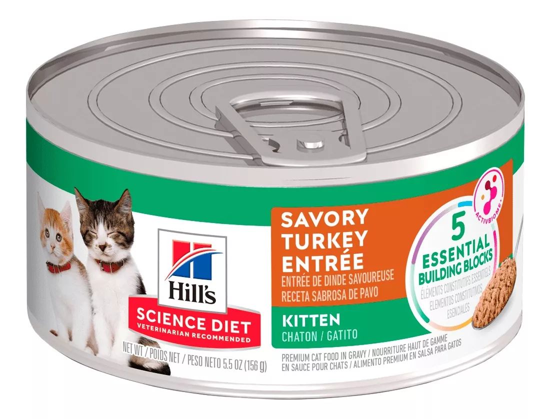 El alimento húmedo Hill’s Science Diet Kitten Savory Turkey Entrée utiliza ingredientes de alta calidad para garantizar la disponibilidad de nutrientes y proteínas clave para el gato joven. Ahora en un nuevo sabor.