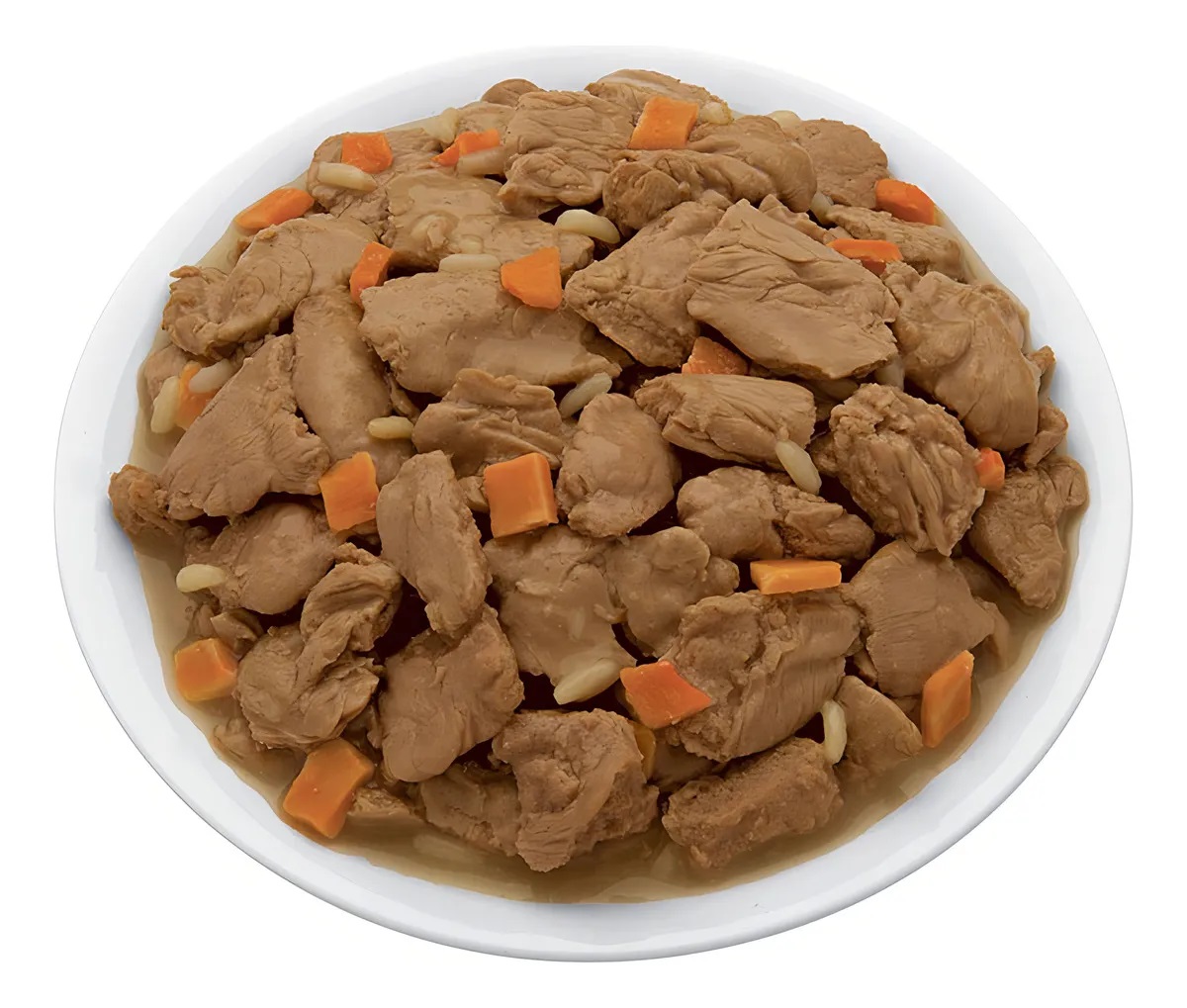 Composición y/o Material Pollo, arroz de cerveceros, harina de pollo, guisantes amarillos, cebada perlada rajada, sorgo integral, producto de huevo, grasa de pollo, aceite de soja, arroz integral, pulpa de remolacha seca, sabor a hígado de pollo, ácido láctico, sabor a hígado de cerdo, cloruro de potasio, linaza , vitaminas (suplemento de vitamina E, L-ascorbil-2-polifosfato (fuente de vitamina C), suplemento de niacina, mononitrato de tiamina, suplemento de vitamina A, pantotenato de calcio, suplemento de riboflavina, biotina, suplemento de vitamina B12, clorhidrato de piridoxina, ácido fólico, vitamina Suplemento D3), sal yodada, cloruro de colina, taurina, minerales (sulfato ferroso, óxido de zinc, sulfato de cobre, óxido manganoso, yodato de calcio, selenito de sodio), tocoferoles mixtos para la frescura, fibra de avena, sabores naturales, betacaroteno, manzanas, Brócoli, zanahorias, arándanos, guisantes verdes.