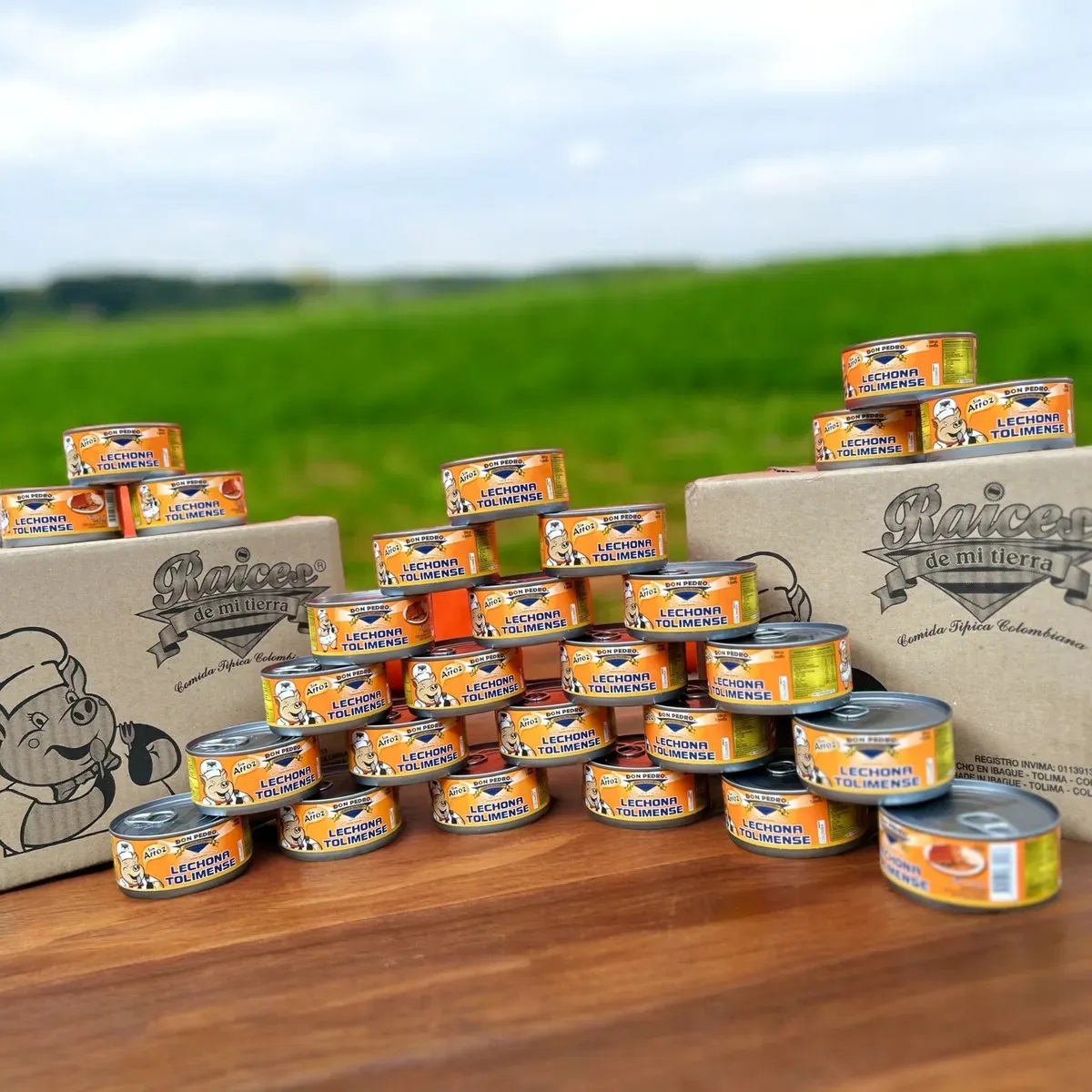 La lechona es un plato típico de la región colombiana del Tolima. Este plato fuerte está compuesto por carne de cerdo y arveja cocinada. Es servido con arepas de maíz blanco y una variedad de natilla que localmente se conoce como «insulso». La Lechona enlatada se fabrica igual que una lechona tradicional y trae su cuerito de cerdo, su duración es de hasta dos años antes de ser consumida. Una vez se preparan los ingredientes se enlatan y se pasan por un túnel de vapor, finalizando se sellan al vacío. Por último se dejan un determinado tiempo en autoclaves, ollas gigantes, a determinada presión y temperatura para eliminar bacterias.