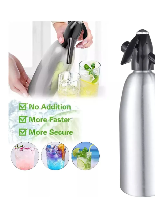 Artículo elegante: este dispensador de agua con gas está hecho de aluminio y mide 3.7 x 3.7 x 12.8 pulgadas con una capacidad de botella de 1 litro. Con un aspecto elegante y hermoso, es una gran adición a cualquier bar o cocina.