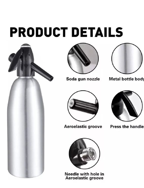 Fácil de usar: Llene el tubo de sifón de soda con menos de 2/3 del volumen de agua (aprox. 22.0 fl oz). Utiliza la tapa estándar de CO2 sin rosca de 0.28 oz, atornilla la tapa carbonatada negra y disfruta de tu bebida gaseosa. Lee las instrucciones adjuntas (idioma español no garantizado) y limpia la botella antes de usar, y mantén la botella seca después de cada limpieza para evitar olores desagradables la próxima vez que se use.