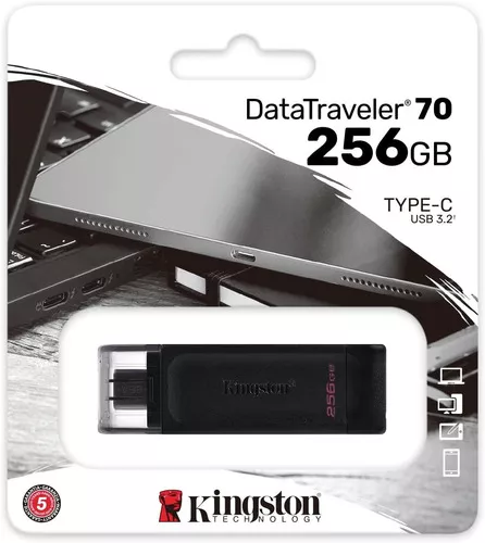 La Memoria USB 3.2 Kingston de 256 GB, modelo DataTraveler DT70, es la solución ideal para quienes buscan un almacenamiento portátil y eficiente. Con su diseño elegante en color negro y su construcción en plástico, combina durabilidad y estilo, haciéndola perfecta para el uso diario.