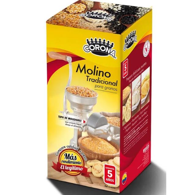 Incluye: 1 Tolva baja, 1 gusano ensamblado, 1 disco moledor fijo con tormillos, 1 bastidor ensamblado, 1 manubrio, 1 tornillo de manubrio, cuerpo del molino