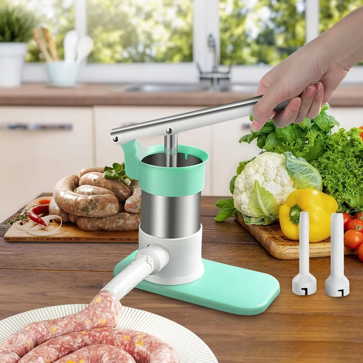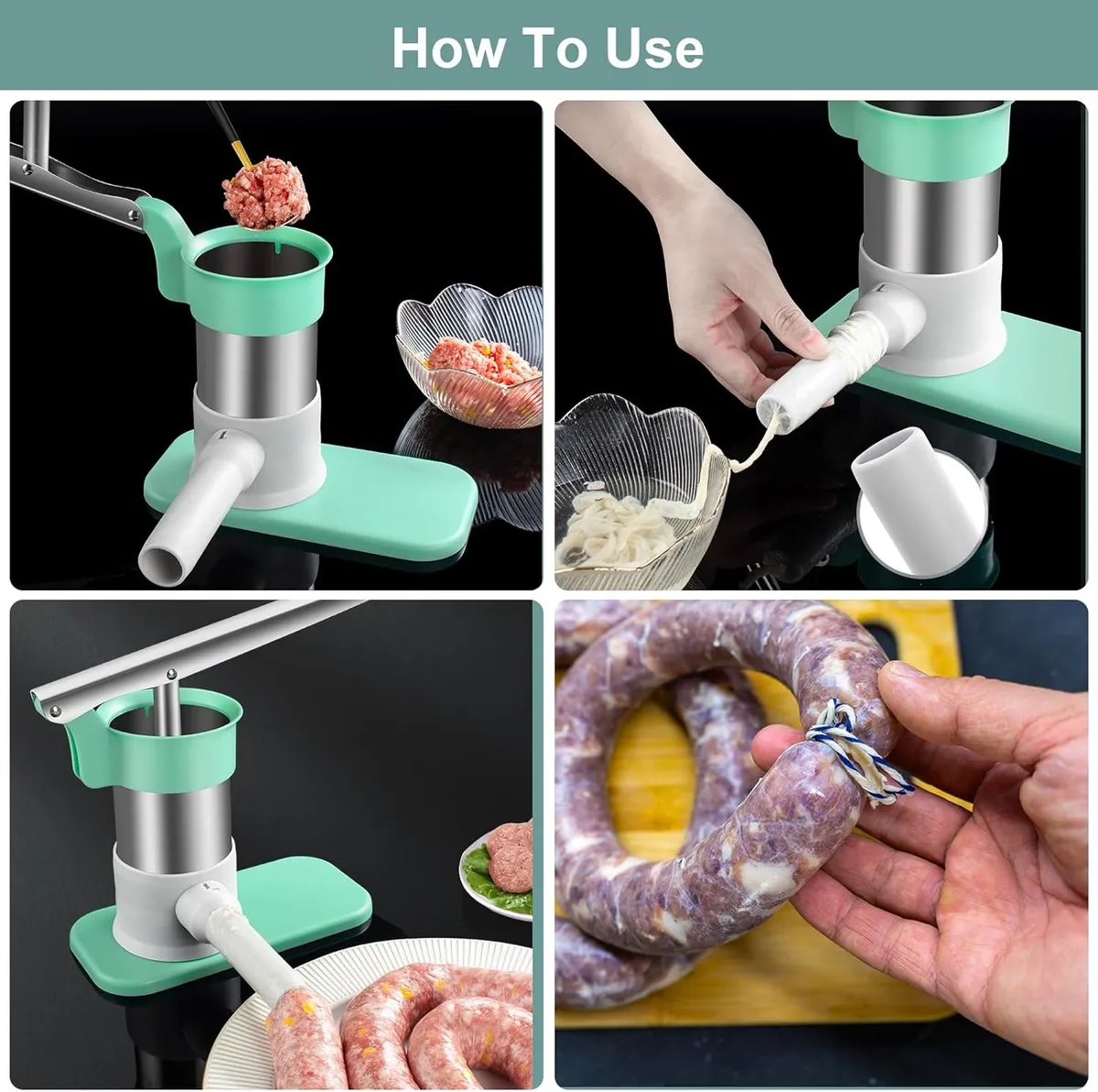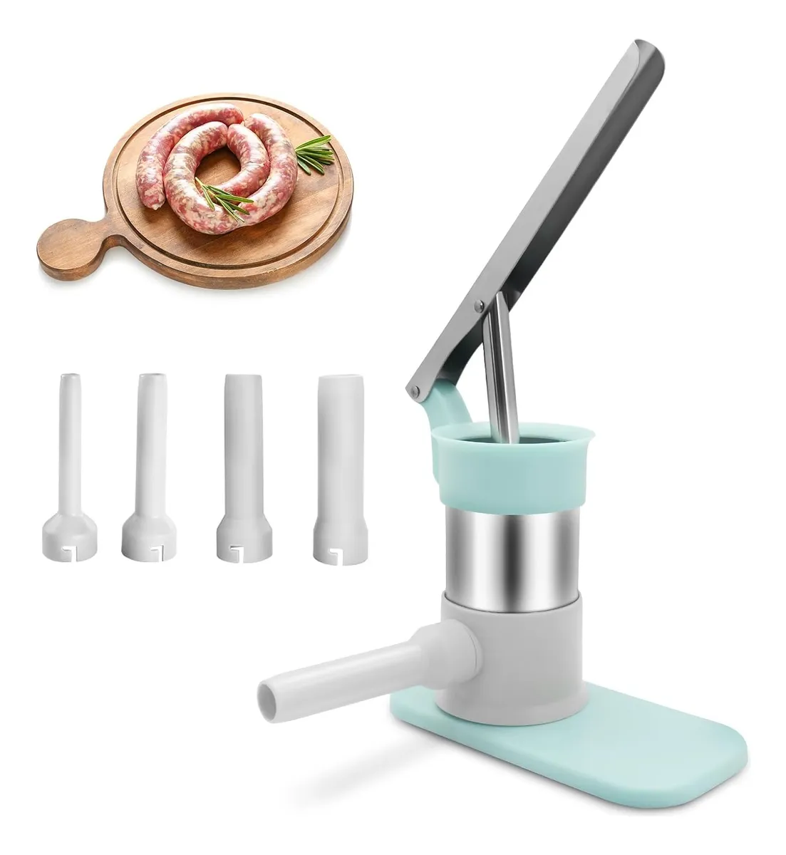 Embutidora de salchichas manual casera Máquina de relleno de salchichas de acero inoxidable con 4 tubos de relleno, llenado rápido vertical de salchichas para hacer diferentes tamaños