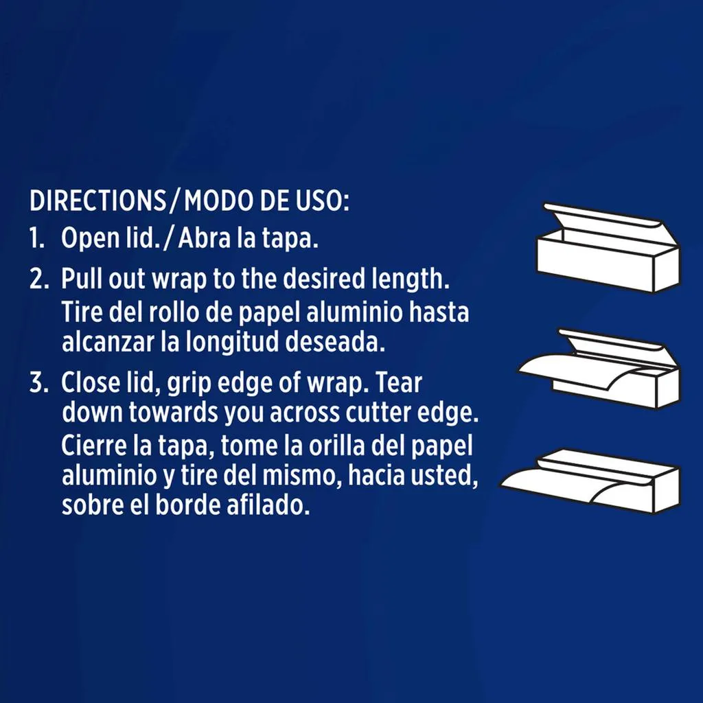 Papel Aluminio Reciclable | Seguro para alimentos | Apto para el horno | Caja ahorradora de espacio con borde afilado | Tamaño del papel: 91.4 m x 30.4 cm / 100 yd x 12″ | Hecho en China.