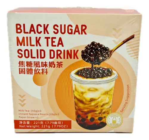 Es una mezcla para preparar té de leche instantáneo con sabor a azúcar negro.