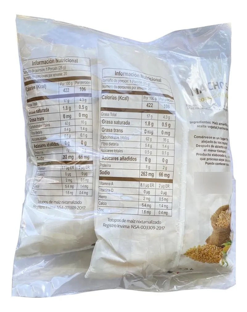 Almidón de yuca y/o almidón (almidón modificado de yuca, almidón natural de maíz), queso (leche entera higienizada, sal cloruro de calcio (estabilizante), cuajo), quinua molida, levadura (leudante), pimienta roja triturada, sabor natural mantequilla, probióticos (bacillus coagulans 1 x10^6 UFC/g), colorante natural annato.