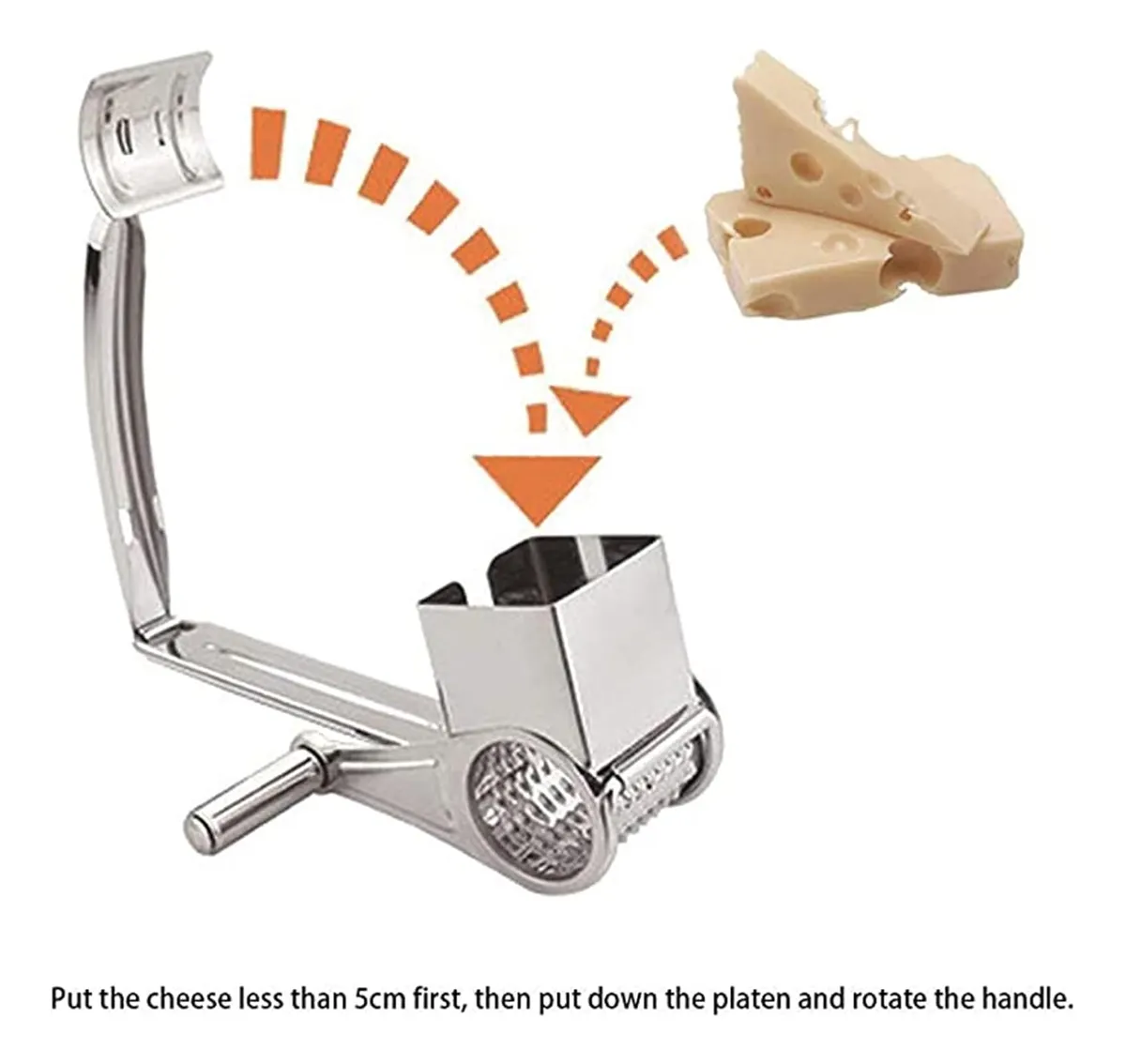 Herramienta Para Rallar, Cortador De Queso En Forma De Tambor De Acero Inoxidable, Rallador De Queso De Mano De Gran Apertura, Trituradora De Queso De Manivela Lavable