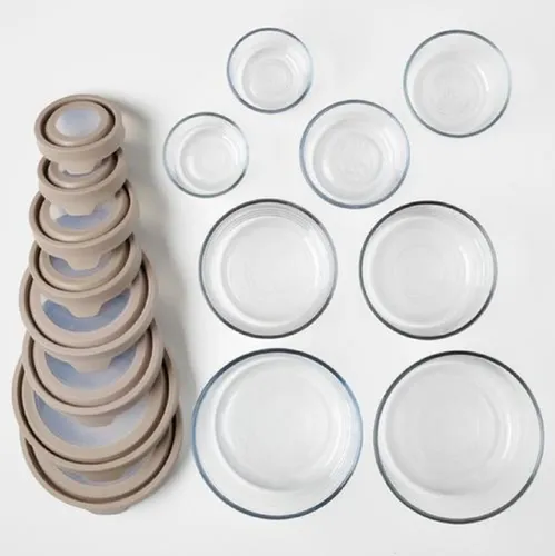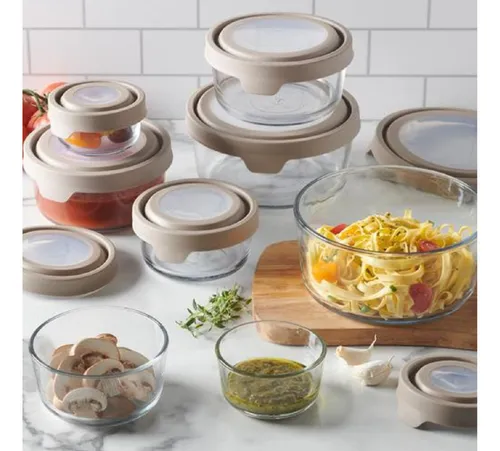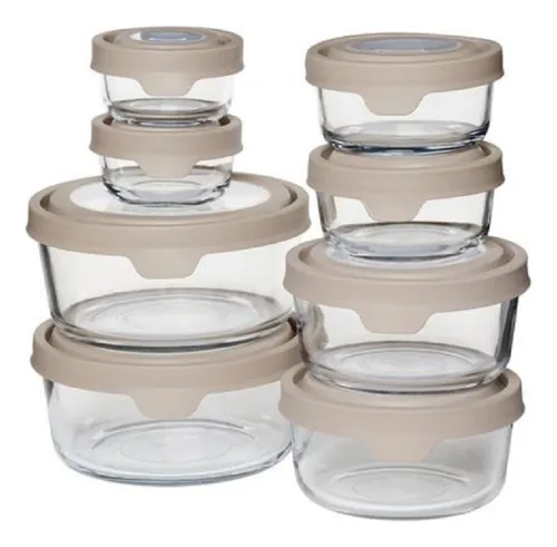 El juego incluye 16 elementos, 8 recipientes y 8 tapas en diferentes tamaños, todos redondos para un fácil almacenamiento.