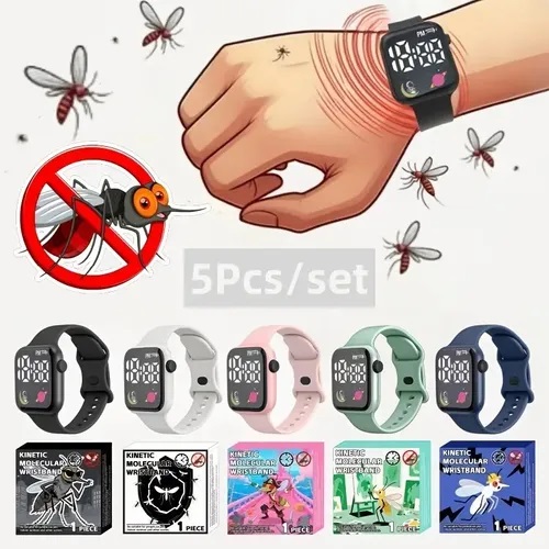 Pulseras repelentes de mosquitos electrónicas, repelente de mosquitos deportivo, repelente de mosquitos físico, pantalla táctil, elegantes y casuales, adecuadas para hombres y mujeres.