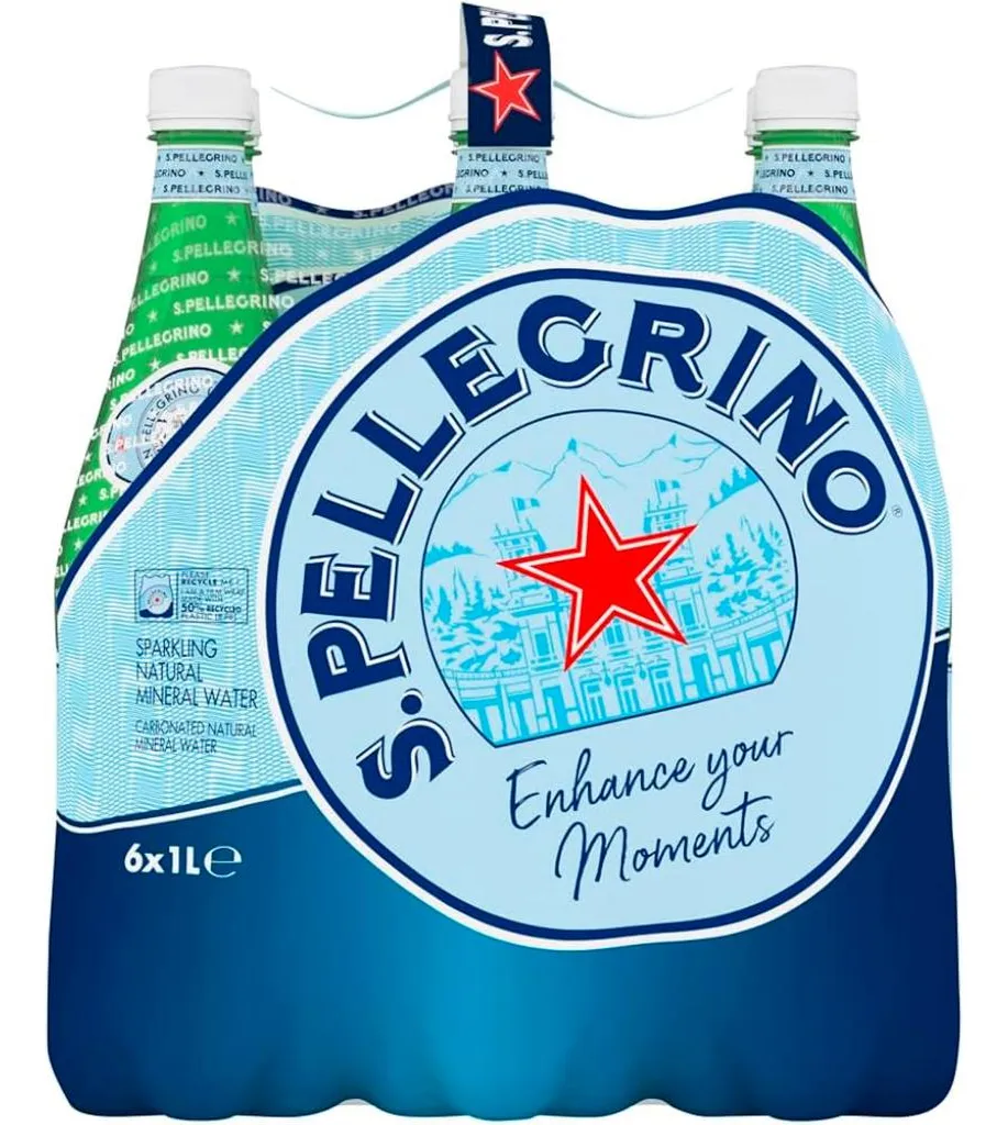 Descripción La elegancia y sofisticación se fusionan en cada botella de San Pellegrino agua carbonatada. Este paquete de seis botellas de 1 L cada una ofrece una presentación generosa y práctica para compartir en reuniones familiares, encuentros especiales o simplemente para mantener una hidratación diaria. Ideal para acompañar mariscos, pastas, tablas de quesos o incluso disfrutar sola, bien fría, en una copa de cristal que resalte su brillo y delicadeza. Ingredientes Agua Información del producto Incluye 6 unidades de agua carbonata de San Pellegrino de 1 L | Su efervescencia fina y persistente acaricia el paladar, aportando un toque de sofisticación tanto a las comidas más sencillas como a las más elaboradas, y convirtiéndose en la compañía ideal para momentos de relajación, celebración o contemplación cotidiana | Producto de Italia. Etiquetas Vegano Vegetariano Libre de lactosa Especificaciones Forma Líquido Almacenamiento Temperatura ambiente Peso de la unidad (cada uno) 1.0000 L Peso neto 6.0000 L Sin gas o con gas Con gas / espumoso Cantidad de paquetes (recuentos) 6 País de origen Italia Importado o Nacional Importado Endulzado o sin endulzar Sin endulzar AlérgenosNo contiene ninguno de los alérgenos principales Marca San Pellegrino Garantía del vendedor: 3 meses