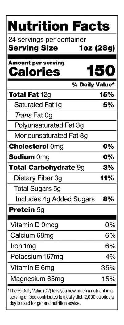 Almendras, azúcar de caña, canela, miel, achicoria (raíz), fibra, aroma natural de vainilla (WONF)