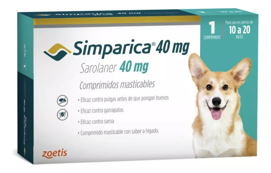 Simparica 40 Mg es un tratamiento eficaz diseñado específicamente para perros que pesan entre 10 y 20 kg. Este producto de la reconocida marca Zoetis se presenta en forma de pastilla amarilla, fácil de administrar, y es ideal para combatir pulgas, garrapatas, sarna y ácaros. Su fórmula avanzada garantiza una protección duradera, con una mínima duración del efecto de hasta 5 semanas, lo que permite mantener a tu mascota libre de parásitos durante un período prolongado.