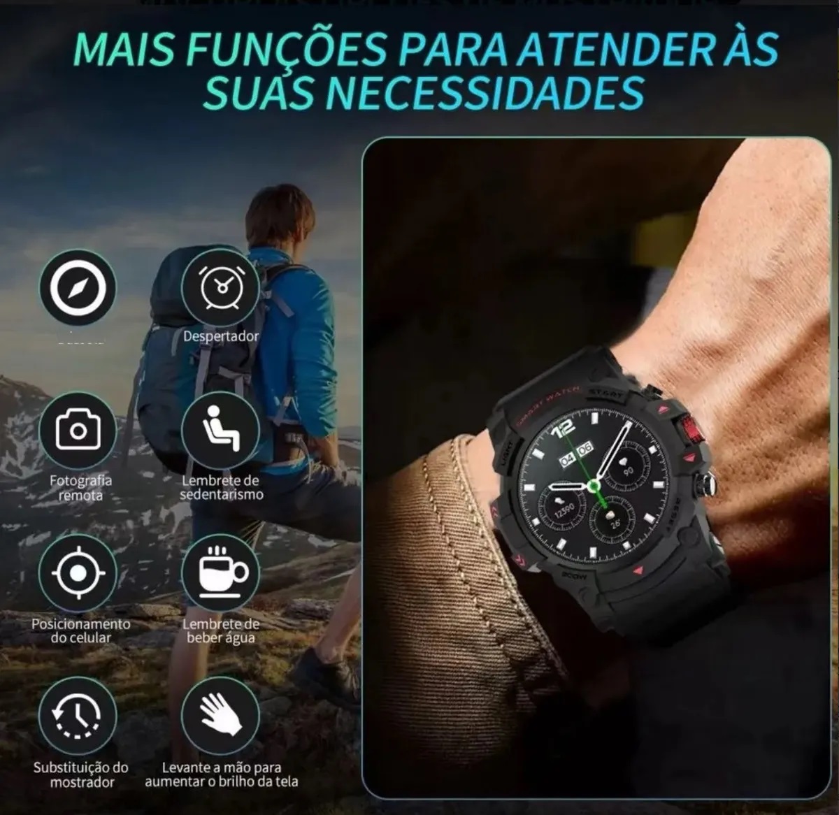 Calorías, Ejercicios, Frecuencia cardiaca, Gps, Notificaciones, Recibe llamadas, táctico, impermeable |