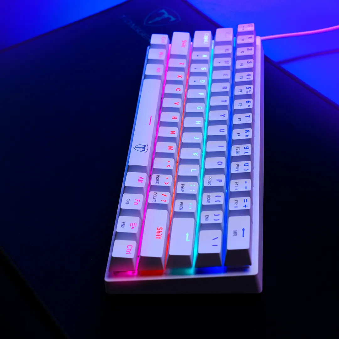T-TGK310 NAXOS RAINBOW PARA EMPEZAR A JUGAR EN SERIO Conoce el Naxos, un teclado mecánico de tamaño completo con interruptores de alta calidad, una estructura sólida, todas las funciones extra que otorgan un plus en el juego y mayor comodidad en la navegación, y un sistema de iluminación Rainbow que, literalmente, lleva las cosas a otro nivel. ILUMINACIÓN RAINBOW ESPECIALIZADA El sistema de iluminación del Naxos está provisto de dos barras LED laterales con movimiento de color y todo el arco cromático, lo que le da un plus estético genial. A través de la tecla FN, puedes alternar de manera rápida y sencilla entre los 9 perfiles de iluminación generales, con efectos coloridos y dinámicos, y los 8 perfiles especiales para el juego (FPS, MOBA, Crossfire, simuladores, RTS y deportes). Además, cuentas con dos perfiles personalizables, con ajustes de color, brillo y velocidad del movimiento. TECLAS DE DOBLE INYECCIÓN Gracias a la doble inyección, las teclas del Naxos lucen un acabado impecable, con la transparencia interna perfecta para que la luz emerja desde el interior y brille con el esplendor de tus ojos cuando ves a tu crush. Además, este sistema aporta una mayor durabilidad; son teclas más robustas, que no se borronean ni se despintan. FUNCIONES MULTIMEDIA Para navegar y reproducir contenido multimedia con absoluta comodidad, el Naxos ofrece una amplia variedad de funciones rápidas con tecla FN. Desde abrir la calculadora o el buscador hasta reproducir una pista o subir y bajar el volumen, tienes todo el control al alcance de la mano y sin despegar la espalda de la silla. EL PLUS DE UN TECLADO GAMER Para evitar accidentes que pueden ser trágicos cuando estás jugando en línea y todo tu orgullo y tu vanidad de jugador están involucrados, el Naxos incluye la función de bloqueo rápido de tecla Windows. Así, antes de entrar a la acción, bloqueas la tecla de la ventanita y te aseguras de que no perderás una partida por pulsarla involuntariamente, sino tan sólo por tu falta de talento. Cuenta también con una matriz 100% anti-ghosting, con 100% de pulsaciones simultáneas (o full key rollover). CONSTRUIDO PARA DARLO TODO El Naxos está construido en plástico ABS reforzado de alta calidad para resistir la furia y los desbordes emocionales que (reconozcámoslo) nunca faltan en el gaming. Además, porque nadie está libre de accidentes, está diseñado para resistir salpicaduras. ¡Un todoterreno! Garantía del vendedor: 6 meses
