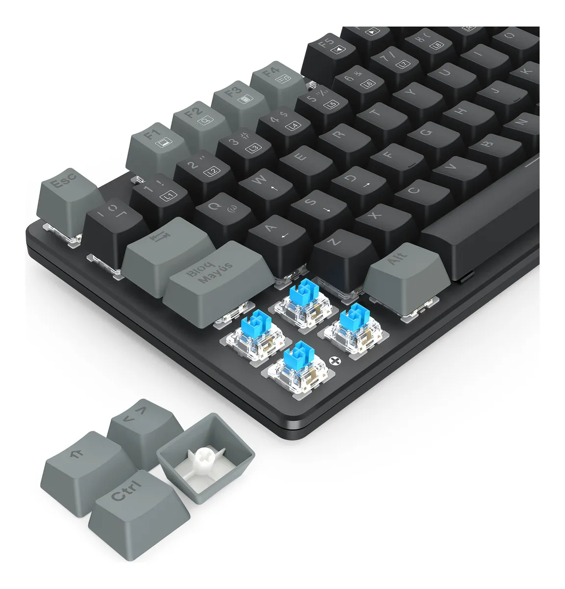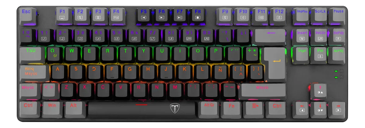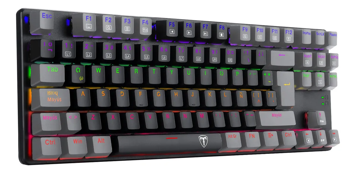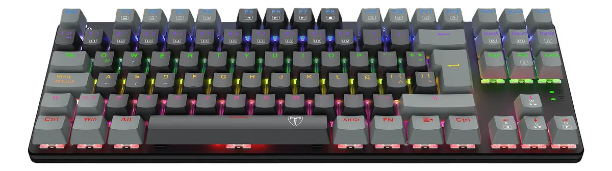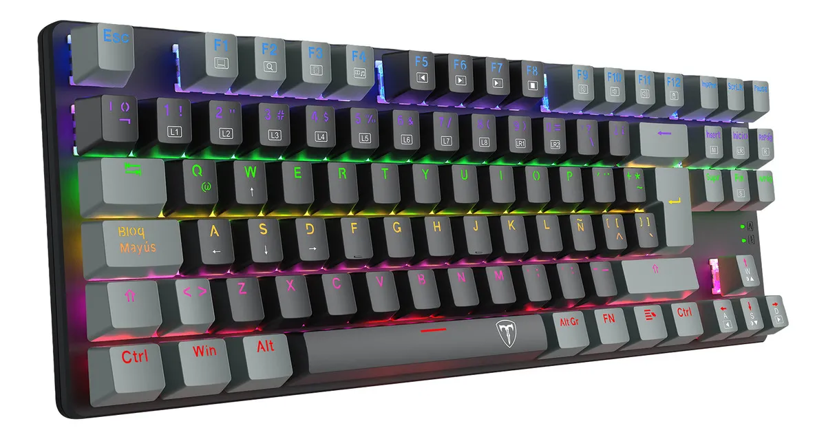 T-TGK310 NAXOS RAINBOW PARA EMPEZAR A JUGAR EN SERIO Conoce el Naxos, un teclado mecánico de tamaño completo con interruptores de alta calidad, una estructura sólida, todas las funciones extra que otorgan un plus en el juego y mayor comodidad en la navegación, y un sistema de iluminación Rainbow que, literalmente, lleva las cosas a otro nivel. ILUMINACIÓN RAINBOW ESPECIALIZADA El sistema de iluminación del Naxos está provisto de dos barras LED laterales con movimiento de color y todo el arco cromático, lo que le da un plus estético genial. A través de la tecla FN, puedes alternar de manera rápida y sencilla entre los 9 perfiles de iluminación generales, con efectos coloridos y dinámicos, y los 8 perfiles especiales para el juego (FPS, MOBA, Crossfire, simuladores, RTS y deportes). Además, cuentas con dos perfiles personalizables, con ajustes de color, brillo y velocidad del movimiento. TECLAS DE DOBLE INYECCIÓN Gracias a la doble inyección, las teclas del Naxos lucen un acabado impecable, con la transparencia interna perfecta para que la luz emerja desde el interior y brille con el esplendor de tus ojos cuando ves a tu crush. Además, este sistema aporta una mayor durabilidad; son teclas más robustas, que no se borronean ni se despintan. FUNCIONES MULTIMEDIA Para navegar y reproducir contenido multimedia con absoluta comodidad, el Naxos ofrece una amplia variedad de funciones rápidas con tecla FN. Desde abrir la calculadora o el buscador hasta reproducir una pista o subir y bajar el volumen, tienes todo el control al alcance de la mano y sin despegar la espalda de la silla. EL PLUS DE UN TECLADO GAMER Para evitar accidentes que pueden ser trágicos cuando estás jugando en línea y todo tu orgullo y tu vanidad de jugador están involucrados, el Naxos incluye la función de bloqueo rápido de tecla Windows. Así, antes de entrar a la acción, bloqueas la tecla de la ventanita y te aseguras de que no perderás una partida por pulsarla involuntariamente, sino tan sólo por tu falta de talento. Cuenta también con una matriz 100% anti-ghosting, con 100% de pulsaciones simultáneas (o full key rollover). CONSTRUIDO PARA DARLO TODO El Naxos está construido en plástico ABS reforzado de alta calidad para resistir la furia y los desbordes emocionales que (reconozcámoslo) nunca faltan en el gaming. Además, porque nadie está libre de accidentes, está diseñado para resistir salpicaduras. ¡Un todoterreno! Garantía del vendedor: 6 meses