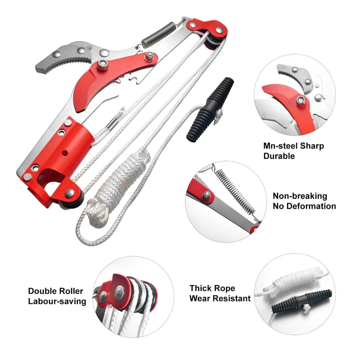 - Diseño de polea: podadora de árbol extensible hecha de material HSS, calidad de resorte de alta densidad, no se deforma ni se fractura. Sistema de polea compuesto para cortar ramas densas con el menor esfuerzo. Ahorra tiempo y energía.