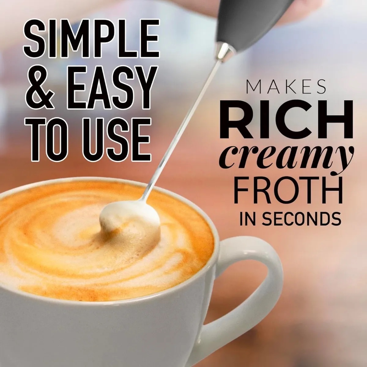 //////// Se envia el color que haya disponible /////// Zulay – Potente espumador de leche de mano para lattes, mezclador de bebidas para café, mini espumador para capuchino, frappé, matcha, chocolate caliente (negro) Marca Zulay Kitchen Características especiales Soporte duradero Color el que haya disponible se despacha Material Acero inoxidable Usos Recomendados Para Producto Capuchino, espuma, mezclador Sobre este artículo Haz espuma rica y cremosa en cuestión de segundos: Los amantes del café nos tomamos en serio la preparación de nuestro café. El espumador Milk Boss le da ese toque final profesional a tu latte, capuchino, macchiato o chocolate caliente. Prepara una deliciosa leche cremosa y espumosa para tus bebidas en casa sin necesidad de ir a la cafetería con tu propio espumador de leche. Los beneficios de tener tu propio batidor de bebidas eléctrico son infinitos. Puedes hacer tu propio café con leche de calidad profesional. Tú mejor que nadie conoces tus gustos. Atención: El empaque puede variar. Batidor de matcha, café y más: Funciona mejor que un batidor manual de matcha para hacer té matcha y funciona mucho mejor que el tenedor o el batidor para el café. Funciona muy bien para mezclar nutritivas bebidas de proteína en polvo sin necesidad de lavar un recipiente adicional, una batidora o un agitador de bebidas. Utiliza nuestro minimezclador para satisfacer tus necesidades de batir y mezclar: Dale un toque saludable a licuados de frutas y batidos añadiendo polvo o sabor de ponche de huevo y mezcla. Calidad probada y de confianza: Utilizamos exclusivamente materiales de calidad prémium. Estructura duradera, no se oxidará ni se romperá. Nuestro pequeño y eficaz espumador funciona con todos los tipos de leche: semidescremada, sustituto de crema, soja, almendra, anacardo, avellana, leche entera y otros lácteos como la mantequilla o crema. Fácil de limpiar y almacenar: El soporte de metal duradero y práctico permite hacer espuma fácilmente y en cuestión de segundos. La limpieza de este espumador y batidor de matcha es aún más rápida. Para limpiarlo, simplemente pon el batidor bajo el agua caliente de la llave y enciéndelo un momento; se limpiará enseguida. Cuando se coloca en la encimera o una mesa, combina muy bien con los demás accesorios relacionados con el café. Nuestro espumador de leche, de mano, potente y duradero, funciona con dos pilas AA (no incluidas), y tiene un diseño compacto, por lo que se puede guardar fácilmente en un cajón. Garantía del vendedor: 3 meses
